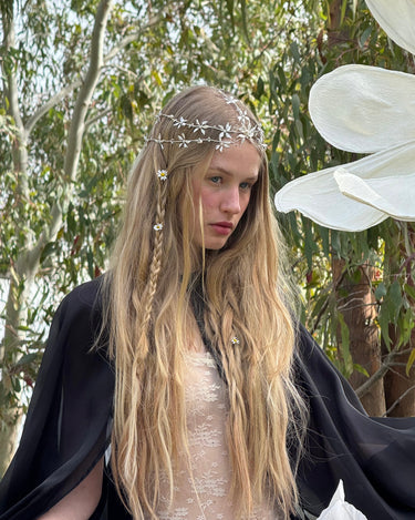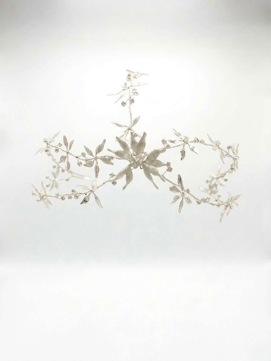 Materiales: Hilo de alpaca en latón y cobre con baño de plata. Capas infinitas creadas a través de un minucioso proceso de superposición de barnices. Cierre de hilo compuesto por un 67% de algodón y un 33% de rayón. Detalles con piezas de cristal checo, strass y abalorios cuidadosamente seleccionados.