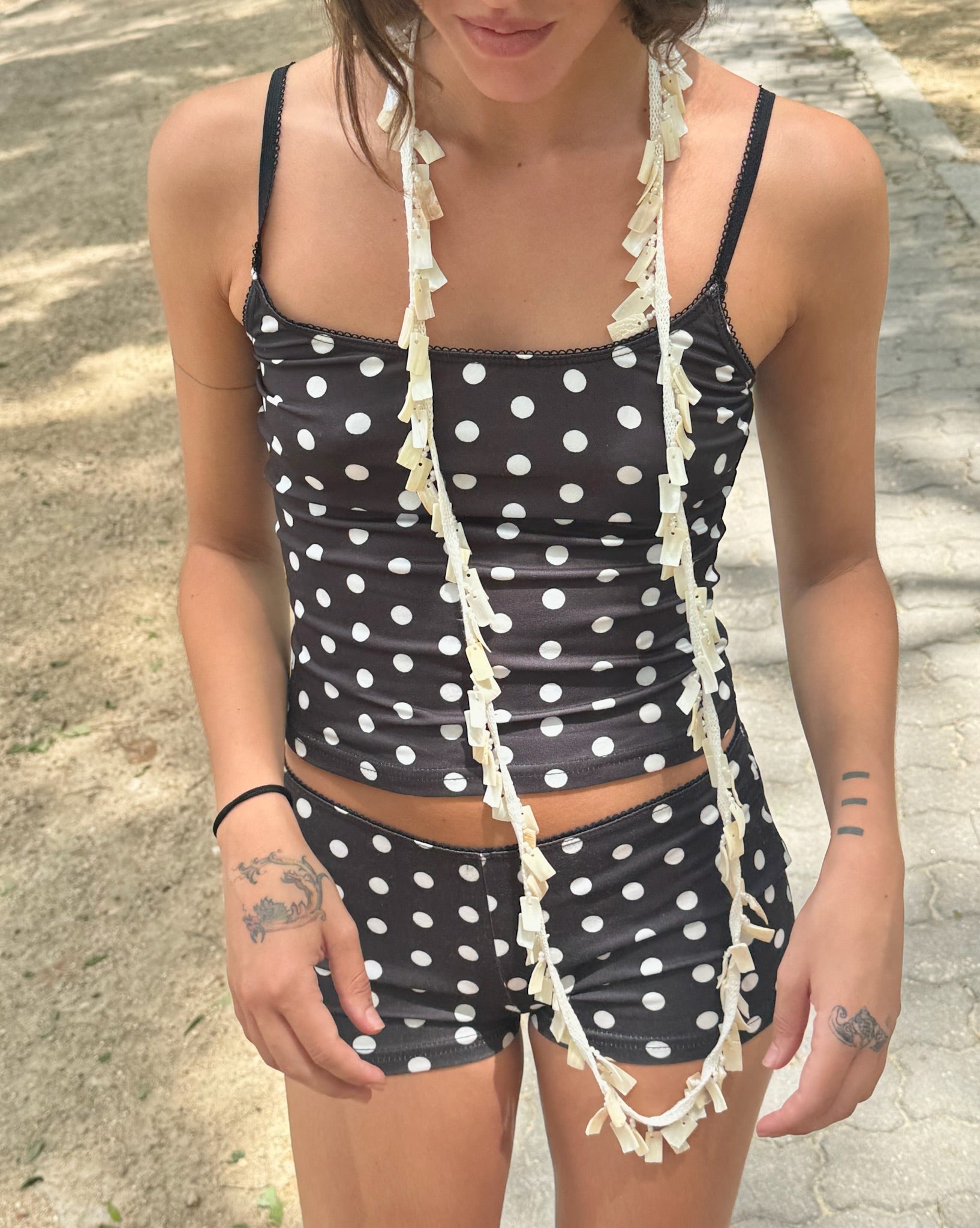 Unique piece with irregular mother-of-pearl beads Handwoven. This long necklace can be worn in multiple ways: as a traditional necklace, wrapped as a choker, as a belt, or even as a scarf for a more relaxed look.