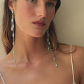 Earrings crafted from silver-plated brass, made up of smooth, mirrored rectangular pieces connected by small chains. Each earring consists of two pieces: a shorter front piece and a separate, longer chain that sits behind the ear, secured with the same nut. The design allows them to be worn with or without the extension, creating two earrings in one.