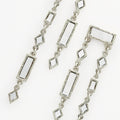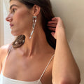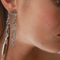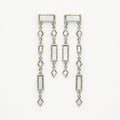 Vertical structure earrings crafted from silver-plated brass. They feature a combination of rectangular and diamond-shaped pieces with hand-set mirrors. Their design provides light and movement, creating a unique piece that naturally elevates any look.