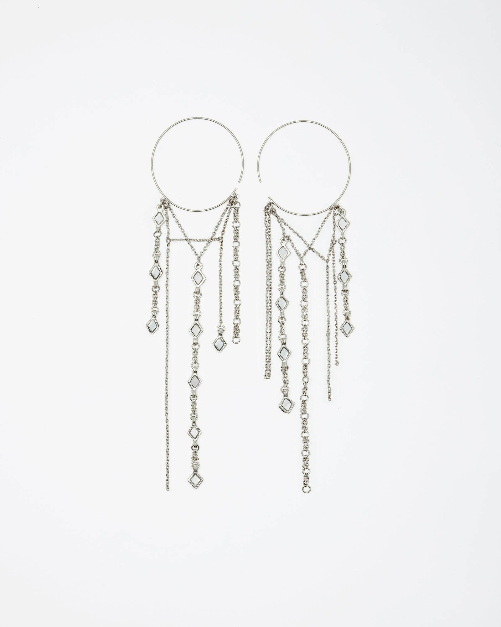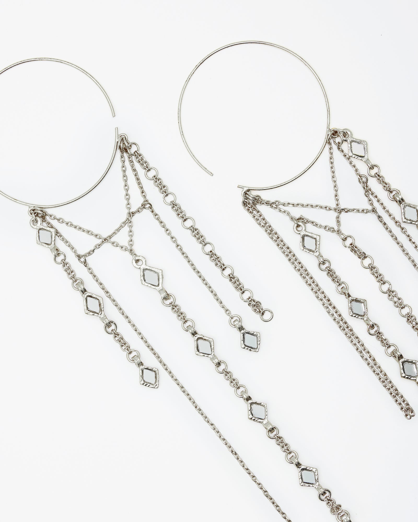 Hoop earrings with silver chains and mirrors